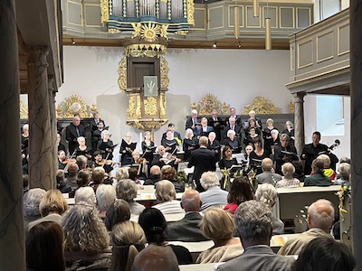 Geistliche Musik ist immer auch zugleich Glaubensverkündigung. Pfarrer Martin Hecker, der später als Mitglied des Chores mitsang, verwies in seinen einleitenden Worten auch auf Jesus, den 'Friedefürsten', wie er in der Bibel bezeichnet wird, der in dieser weltweit so friedlosen Zeit einmal mehr herbeigesehnt wird.