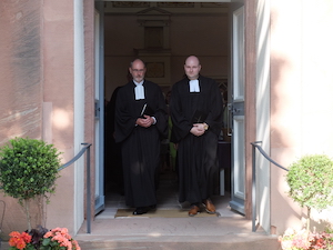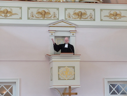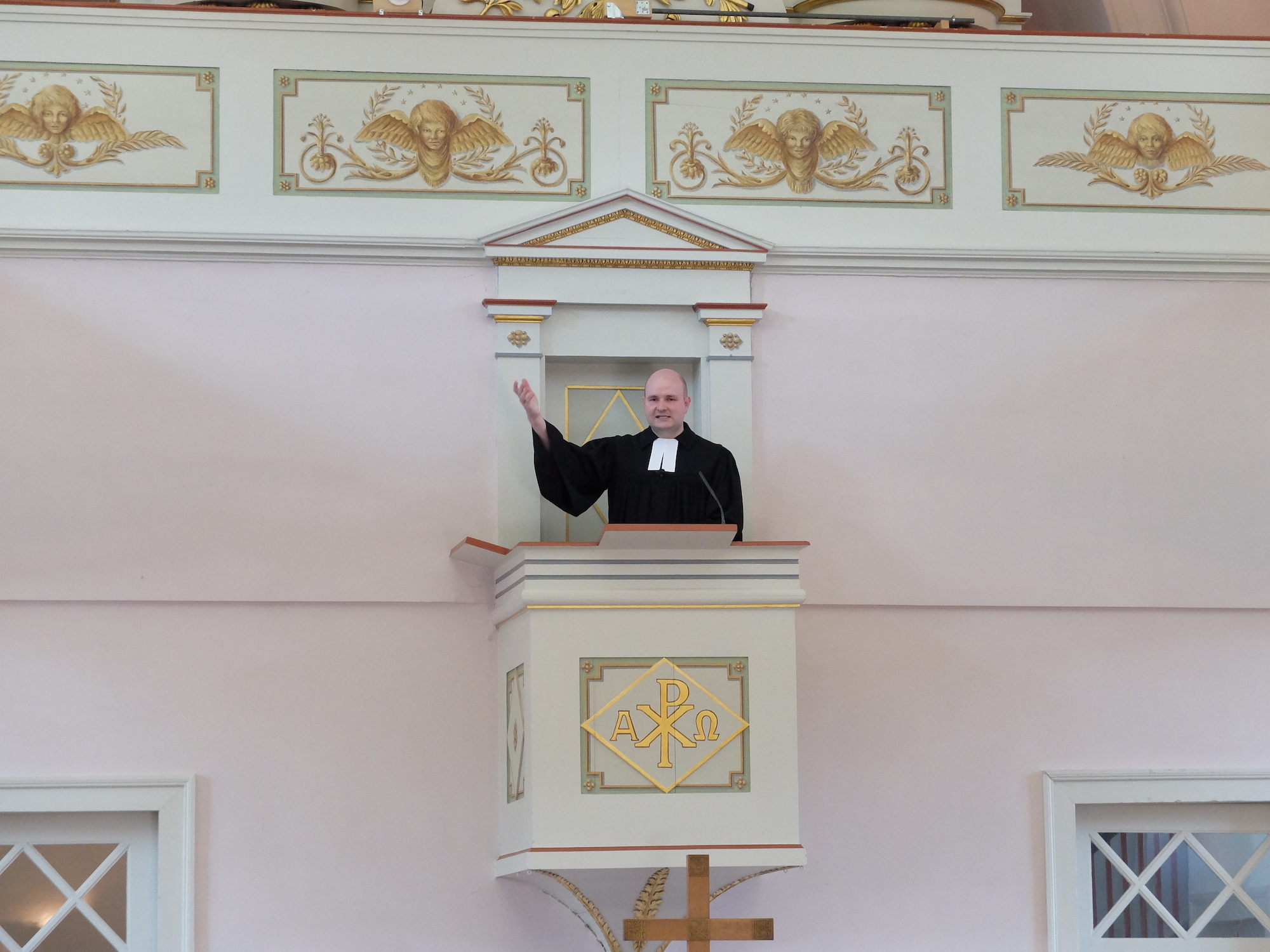 Pfarrer Marcel Albert griff in seiner Predigt das Bild vom 'weiten Raum' auf, auf den Gott die Füße nach den Worten des Psalmbeters stellt. "Gott ist mit mir Wege gegangen, hat Räume geöffnet", so Albert; "Räume der Freude ebenso wie solche der Angst und Dunkelheit" - mit all dem eben, was zu einem Leben gehört. "Und Gott führt in die Weite", so die Erfahrung des jungen Pfarrers.