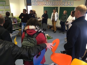 Zuvor hatten die Mitglieder der Dekanatskonferenz an einem Morgenkreis der Schülerinnen, Schüler und der Lehrerinnen teilgenommen. Anschließend hatte Schulleiterin Anette Röhner die Gäste durch die Schule geführt und deren Konzept und die Räumlichkeiten erläutert.