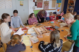 "Wir lehren die Kinder alle wichtigen klassischen Handarbeitstätigkeiten", erzählt Anne Gerbig, die selbst bis zu ihrem Ruhestand als Fachlehrerin für Ernährung und Hauswirtschaft an der Michelstädter Berufsschule unterrichtet hat. "Wir nähen, stricken und häkeln", zählt sie auf, "aber auch Weben, Knüpfen, Flechten und Filzen gehören dazu". Gemeinsam wurden auch schon kunstvolle Karten gestickt. Die Nähmaschine kommt zwar immer wieder zum Einsatz, das meiste aber sei auch im engeren Sinn reine Handarbeit. Und die Kinder sind begeistert dabei. "Viele würden gerne auch in den Ferien noch kommen", freut sich Anne Gerbig.