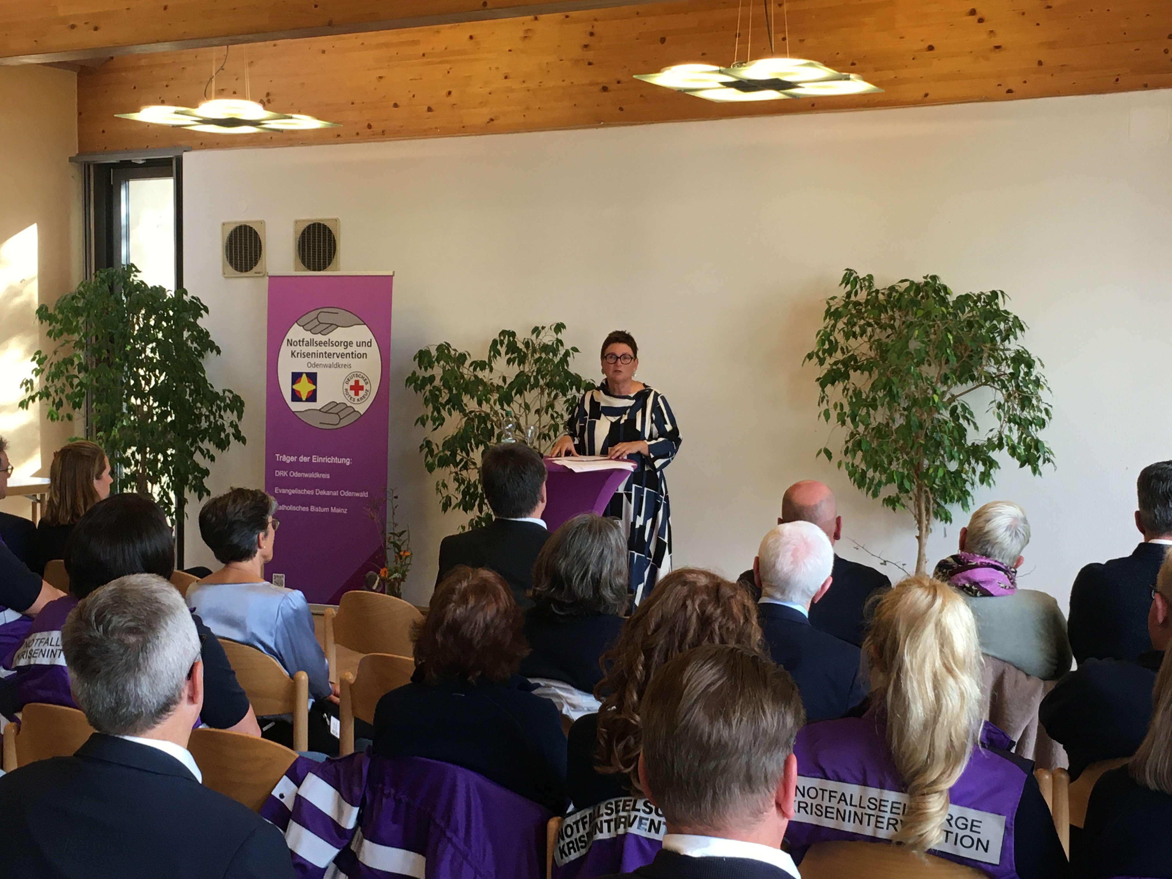 Erbach. 25 Jahre Notfallseelsorge und Krisenintervention Odenwaldkreis: Mit einer Feier im katholischen Gemeindezentrum St. Sophia in Erbach beging die Einrichtung ihr Jubiläum. Für die Leitung begrüßte Ulrike Klose vonseiten des Deutschen Roten Kreuzes Kreisverband Odenwaldkreis (DRK) die Festgäste. Nach Sektempfang und Grußworten bekamen Dorothee Hartmann und Anja Sauer für fünf Jahre aktiven Dienst im Team Urkunden. Posthum geehrt wurde für ihr "beispielhaftes und unermüdliches" Engagement Bärbel Roßner, die 1999 vonseiten des DRK zu den Gründungsmitgliedern der Krisenintervention gehört hatte.