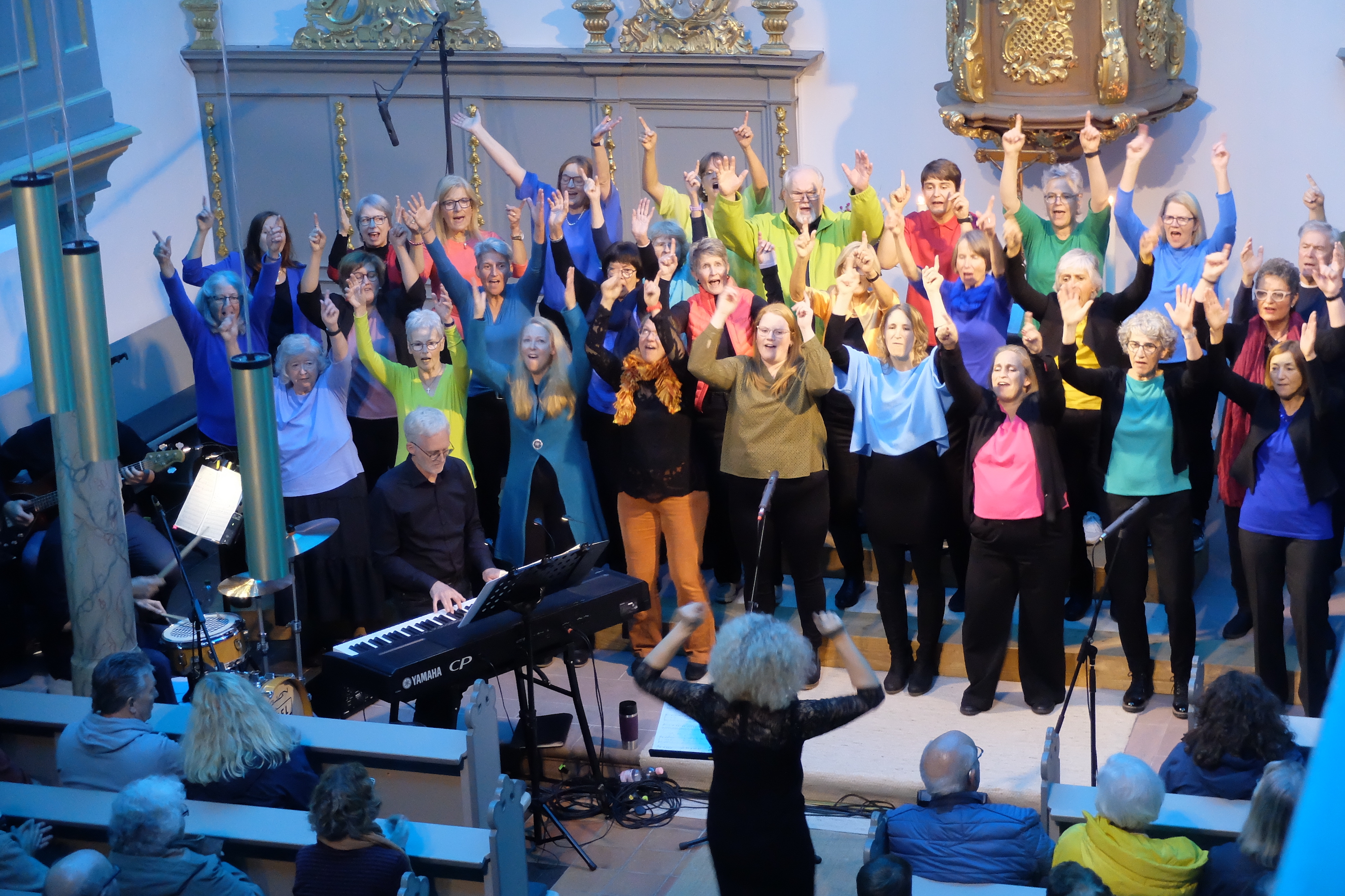 Die Texte wurden, wie in der Schlosskirche üblich, an die Wand projiziert, und manche Besucherinnen und Besucher sangen mit. Auch zum Mitklatschen und Tanzen waren alle ausdrücklich eingeladen.