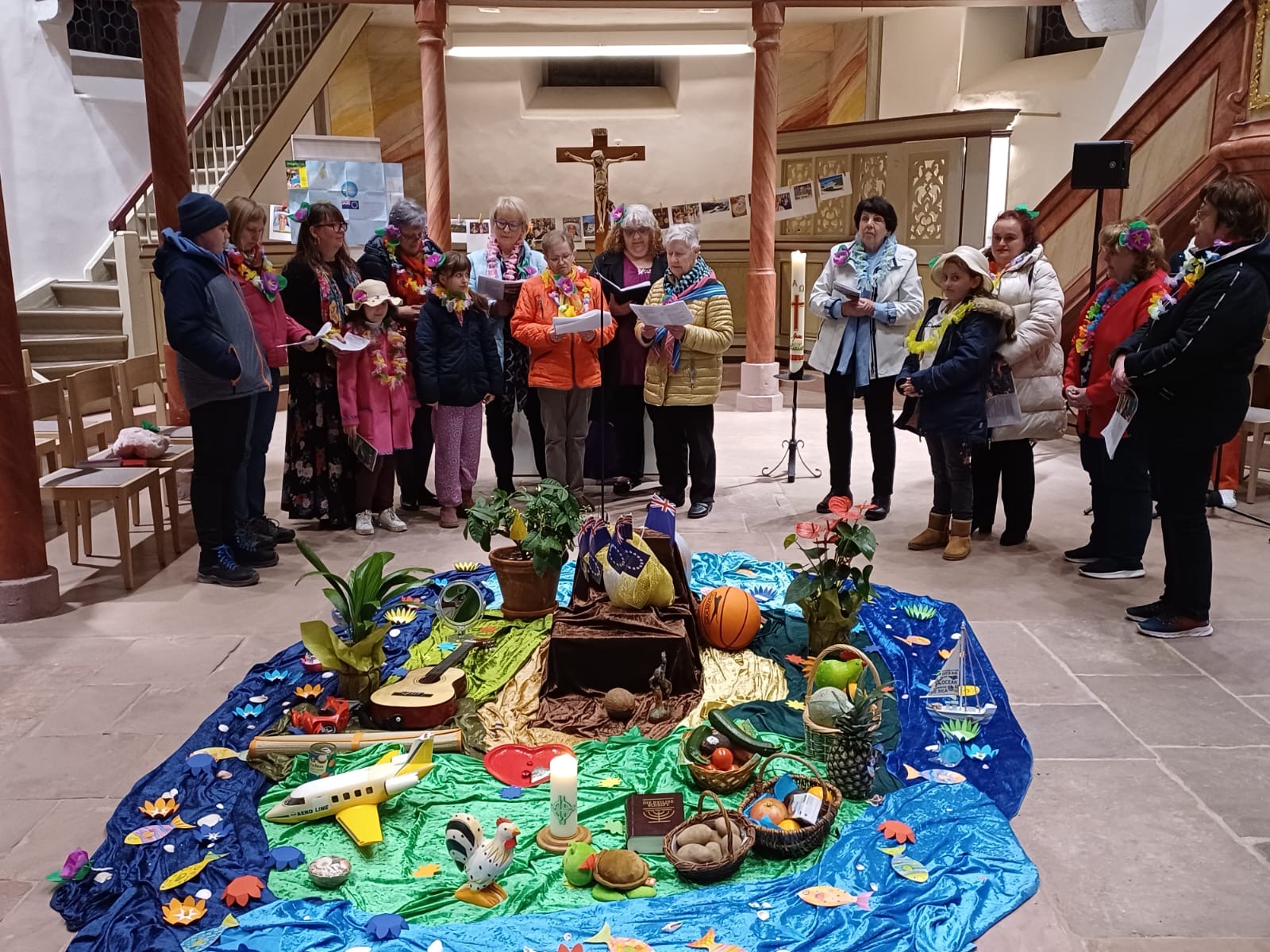 Lützel-Wiebelsbach. Der ökumenische Gottesdienst zum Weltgebetstag - in Lützel-Wiebelsbach eine feste Größe. Diesen jährlichen Tag, jeweils am ersten Freitag im März, gestalten mit inzwischen langer Tradition die Frauen der evangelischen und der katholischen Gemeinde Lützelbachs gemeinsam. "Wie in jedem Jahr ist die Liturgie in einem anderen Land vorbereitet worden", erläutert Prädikantin Ute Karl, die zusammen mit einem Team den Gottesdienst in der evangelischen Kirche in Lützel-Wiebelsbach gestaltete. Dieses Jahr haben ihn christliche Frauen von den über 16.000 Kilometer von Deutschland entfernten Cookinseln entworfen; 'wunderbar geschaffen!' haben sie die Gebete als Leitsatz überschrieben.