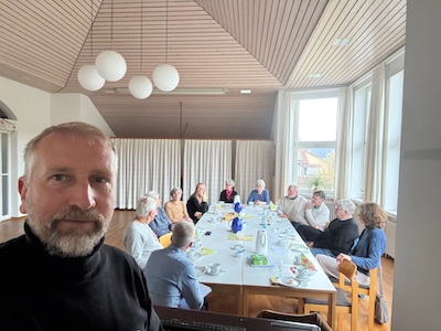 Nach einer Begrüßung durch Dekan Stein und einem gemeinsam gesungenen Kanon zur Jahreslosung - vom gastgebenden Kantor selbst geschrieben - folgte eine Vorstellungsrunde der zwölf Gäste. Hier ergriff auch Johannes Schmidtke die Gelegenheit, sich als neuer Dekanatskirchenmusiker vorzustellen. Bei einem regen Austausch nutzten die Gäste die Gelegenheit, voneinander zu erfahren und Erfahrungen mit der kirchenmusikalischen Situation vor Ort auszutauschen - ob es nun ein gelungenes oder geplantes Konzert ist, Probleme bei einer Honorarabrechnung oder eine restaurierte Orgel. Nach drei Stunden intensiven Austauschs war klar, dass es solche Kirchenmusiker-Treffen auch weiterhin geben soll. Geplant sind zwei bis drei Treffen im Jahr an wechselnden Orten in den Nachbarschaftsräumen des Dekanats.
