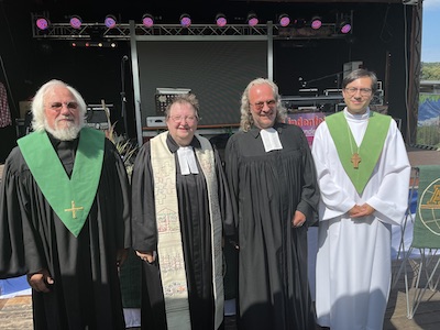 Bodo Bach hätte wahrscheinlich gefragt: "Ich hätt' da gern emol e Problem - wer krischt'n jetz' des Mikrofon?" Doch keine Sorge: Es gab weder Streit um die Redezeit noch theologische Grabenkämpfe. Stattdessen gestalteten die vier Geistlichen gemeinsam einen Gottesdienst, der mit erfrischendem Humor und tiefem Ernst gleichermaßen das Festgelände in ein offenes Gotteshaus verwandelte.