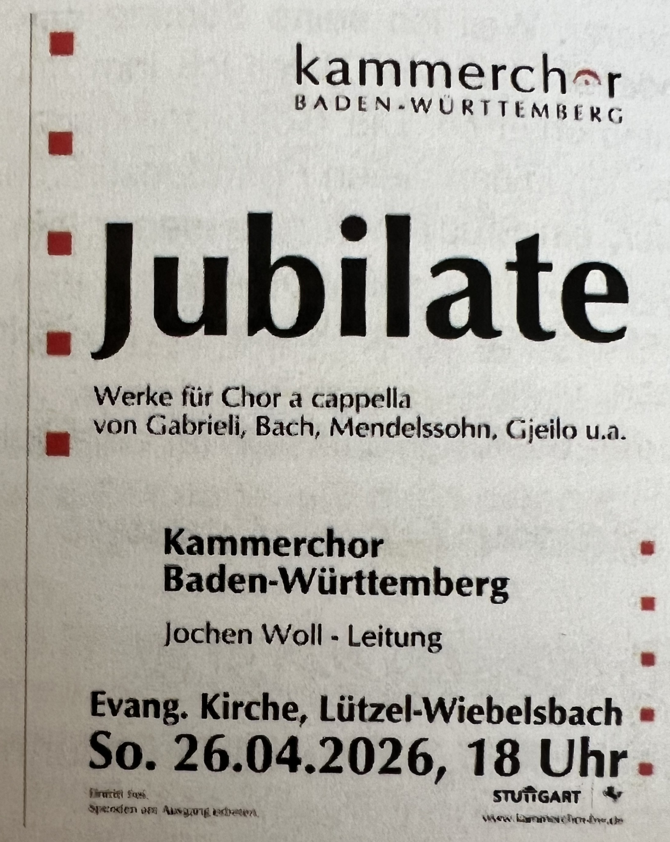 | 26. April | Lützel-Wiebelsbach Kirche 18 Uhr |